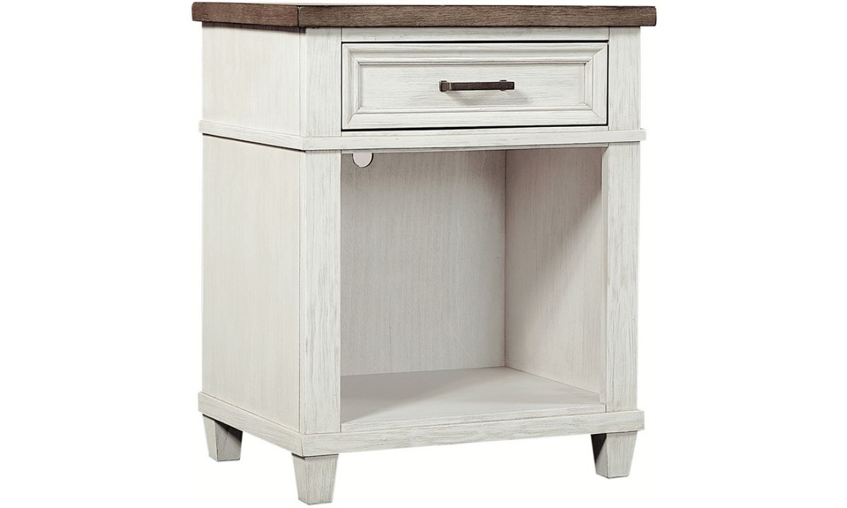Crafted from select hardwoods in a stunning Aged Ivory finish, the Caraway 1-Drawer Nightstand is timeless and space efficient.