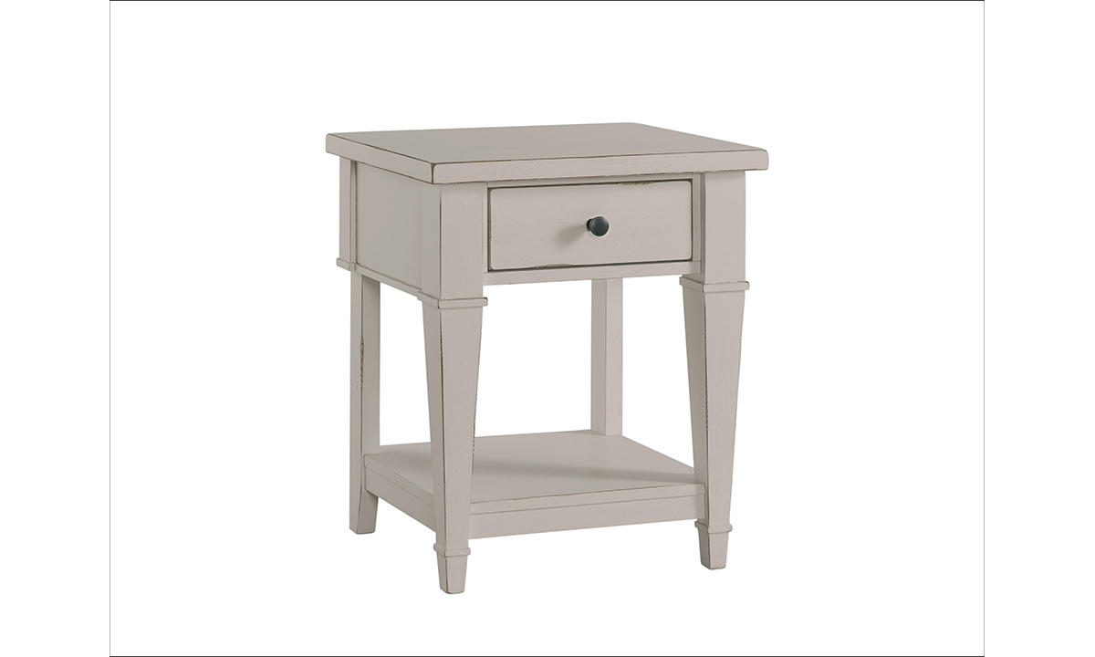 Elevate your bedroom with the Northport Gray 1-Drawer Nightstand, a luxury bedroom furniture piece. Made from poplar solids with a harbor gray finish, it features a bottom shelf, durable dovetail drawer, and smooth glides.