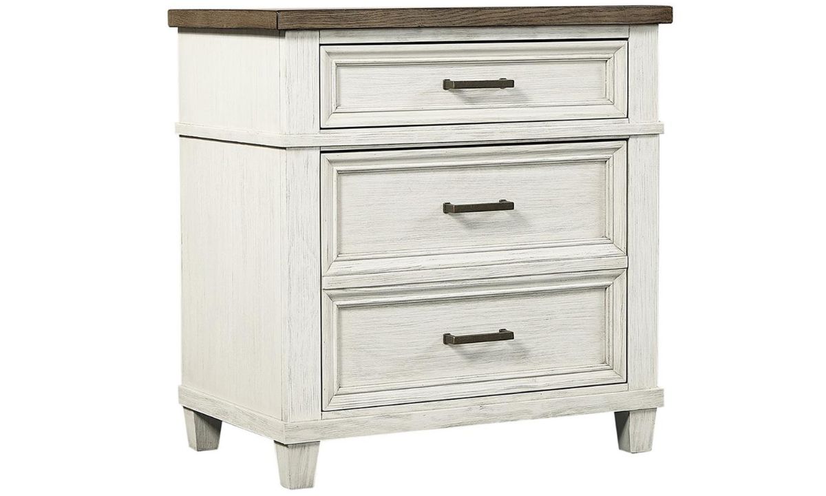 Crafted from select hardwoods in a stunning Aged Ivory finish, the Caraway 2-Drawer Nightstand is timeless and space efficient.