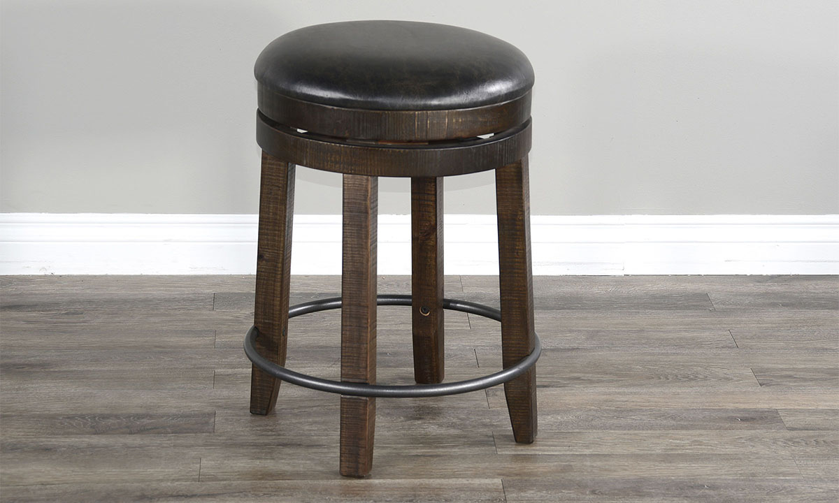 Enhance your seating with the Homestead Tobacco 24" Backless Swivel Stool. These dining stools feature a rich tobacco finish, mahogany construction, a comfortable upholstered seat, and convenient swivel functionality.