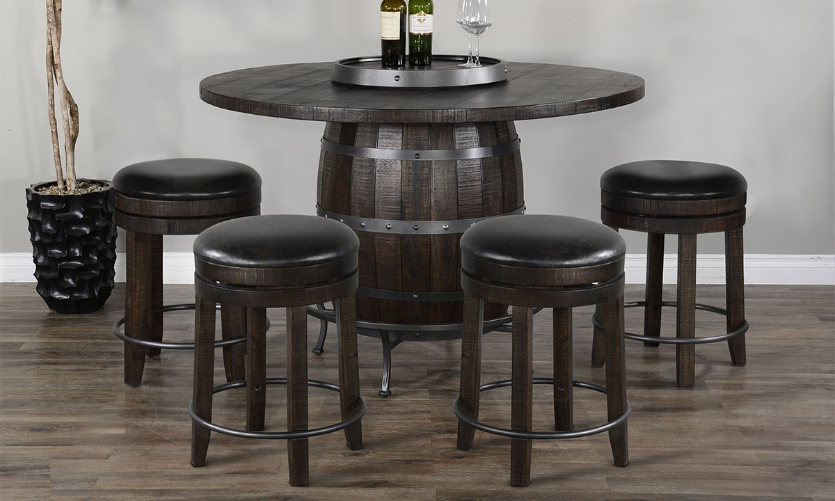 Refresh your home with Barrel & Board's Round Pub Height Table. With its rough sawn textured top and scratch-resistant metal base, this dining table is sure to make a statement in style and luxury that will impress your guests.