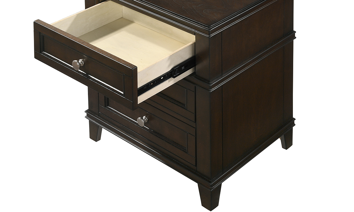 The nightstand features a rich cherry finish that adds warmth and richness to your space. The cherry finish beautifully complements the poplar solids and birch veneers, creating a harmonious and timeless look. Equipped with three spacious drawers, this nightstand offers ample storage for your bedside essentials. The smooth ball bearing drawer guides ensure effortless opening and closing, allowing you to access your items with ease. One of the standout features of the Waterpointe Cherry Nightstand is the built-in USB charging port. With this convenient feature, you can easily charge your electronic devices overnight, keeping them within reach and ready for use. Crafted with attention to detail and quality, this nightstand is built to last. The sturdy construction of poplar solids and birch veneers ensures durability and longevity, making it a practical and reliable choice for your bedroom. Whether you need a place to keep your books, glasses, or other bedside necessities, the Waterpointe Cherry 3-Drawer Nightstand provides both storage and style. Its classic design and functional features make it a versatile addition to any bedroom decor.