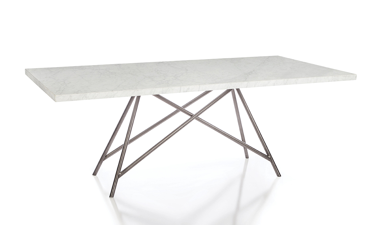 Built with marble and steel finish over a sturdy, stainless steel base, this 80" dining table from Modus seats up to 8 people and is a stunning piece of contemporary furniture.