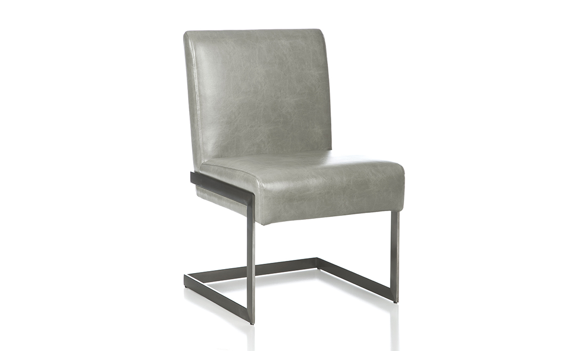 Relax during meal time with dining chairs like the Coral Gray Upholstered Side Chair, built with web suspension seating and synthetic leather in a cool, Coral Gray.