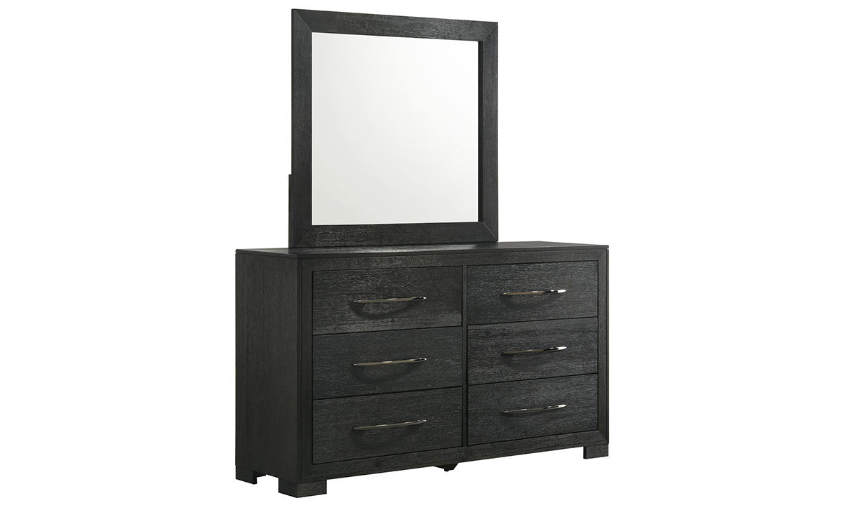 Add sophistication to your space with our Vanity Mirror for bedroom use. It features elegant beveled glass and a striking ebony finish, and the design ensures easy attachment to the matching dresser.