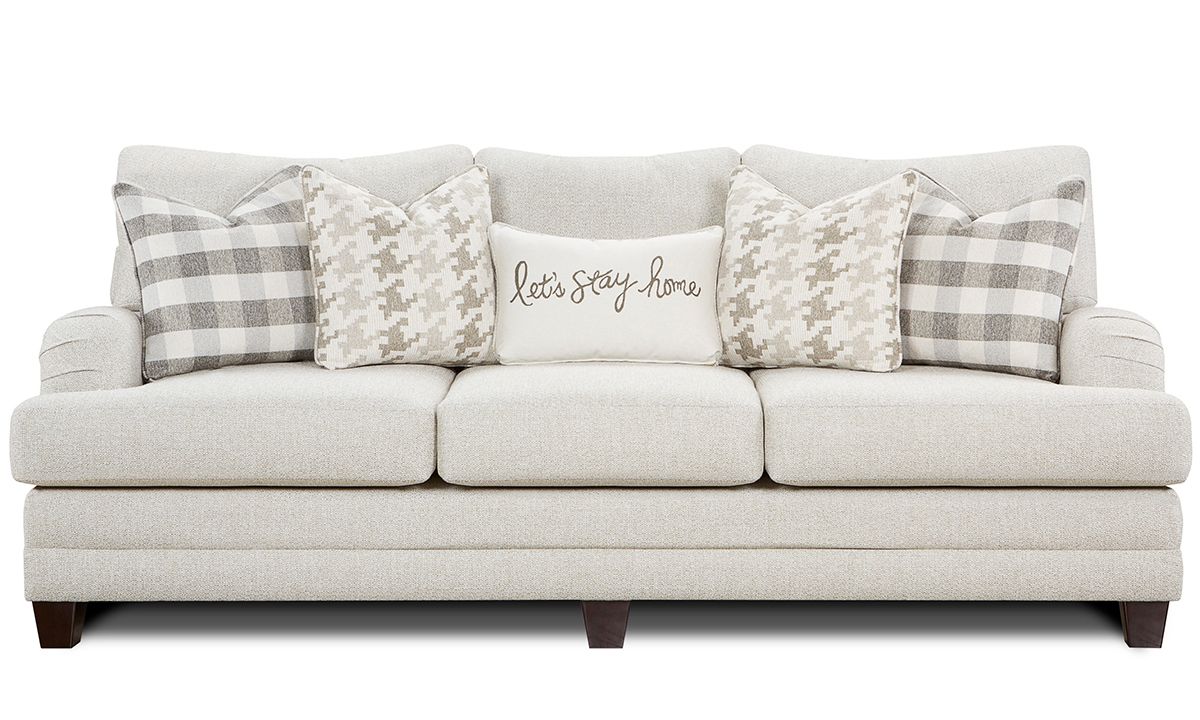 Bring a relaxed sense of refinement to your living room or den with the 94-inch Charles of London Cream Berber Sofa. Supportive sinuous springs lie beneath its comfortable cushions, punctuated with regal Charles of London arms. Blocked dark wood feet and soft cream upholstery make this silhouette casual enough for a cottage sunroom, while patterned toss pillows in soft grey tones provide a stylish yet homey look.