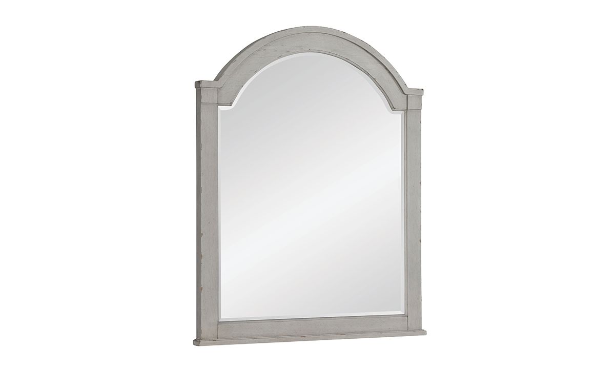 Attached to the coordinating Belhaven Weathered White 8-Drawer Dresser or hung on its own as a timeless decorative accent in an entryway, home office or bedroom, the Belhaven Weathered White Arched Mirror is the finishing touch your space needs. Crafted from Rubberwood solids and textural Flat Cut Oak veneers, the classic arched frame on this 39-inch tall mirror is given an inviting new look with a relaxed, Weathered White wood finish. Effortlessly blending in coastal, cottage or farmhouse styles alike, this simply chic beveled glass mirror is sure to brighten up any living space.