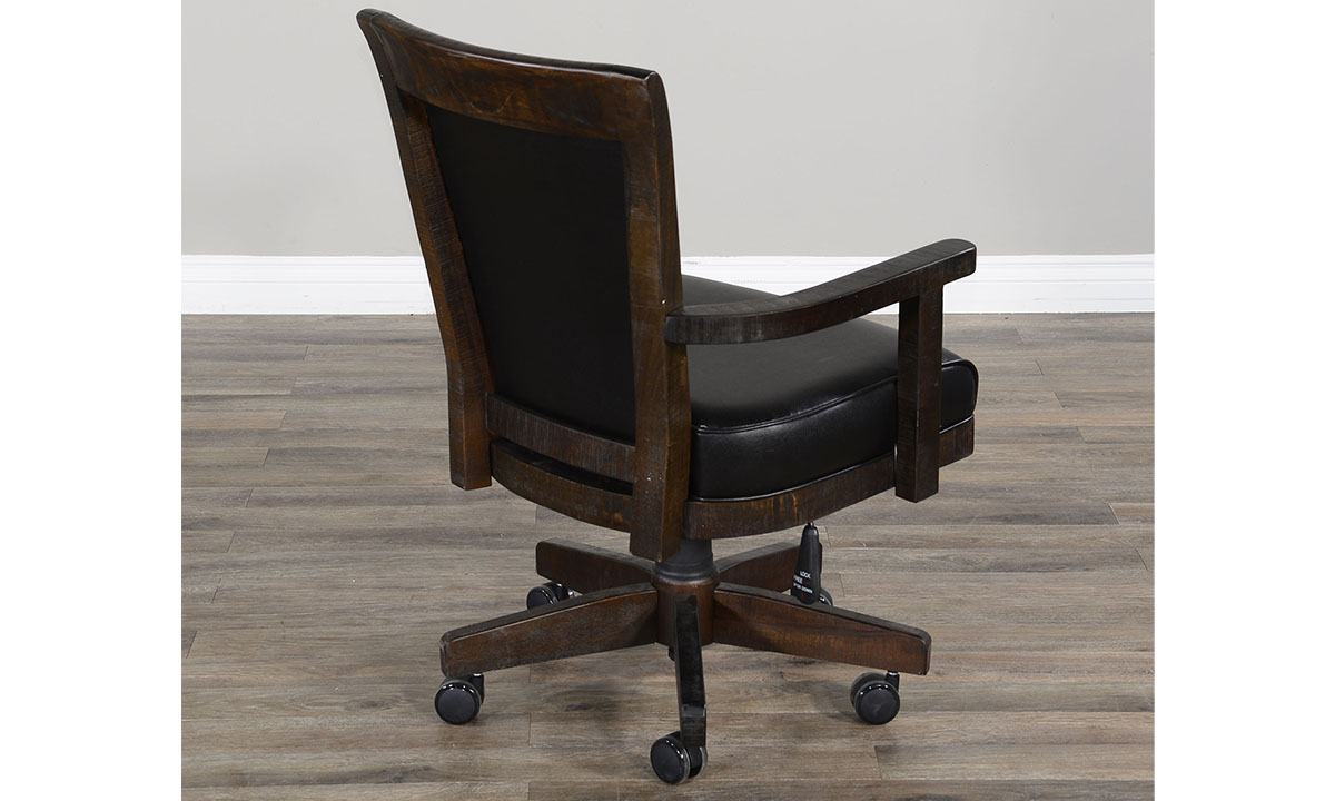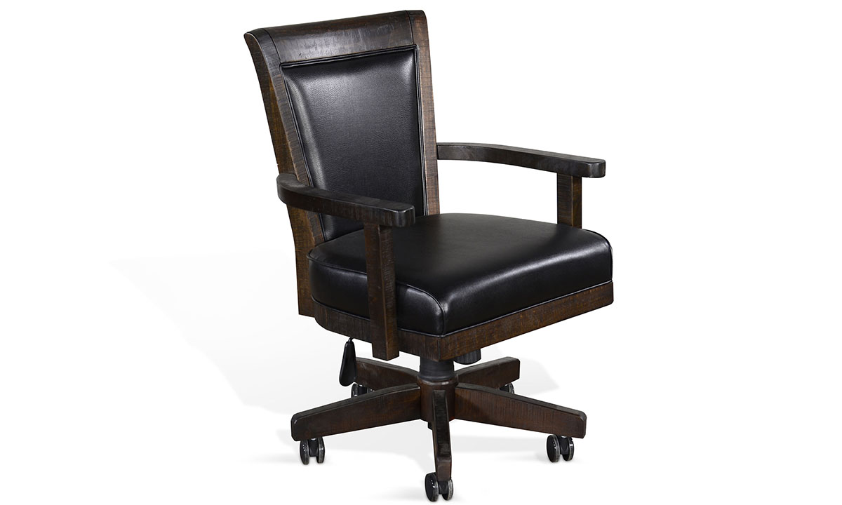 The Homestead Tobacco Game Chair offers style and convenience with its tobacco leaf finish, mahogany construction, and easy-to-move casters.