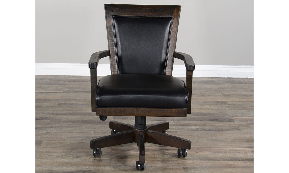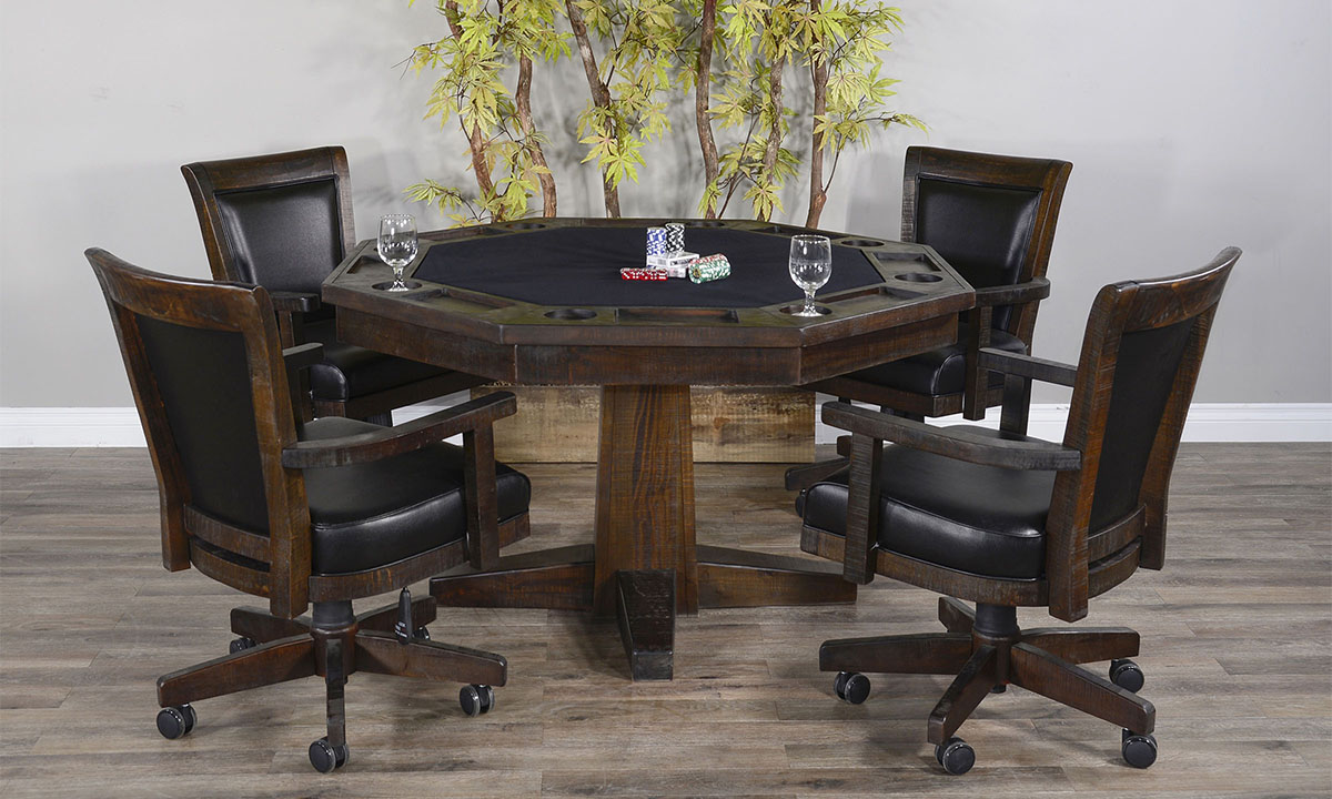 The Homestead Tobacco Game Chair is a game-changer for any enthusiast. Its tobacco leaf finish and plush black upholstery, paired with the durability of mahogany solids and veneers, create a perfect blend of elegance and comfort. With an adjustable gas lift and cushioned support, it ensures hours of gaming in style. Designed to complement the reversible game dining table, these dining chairs are a must-have for a complete gaming setup that combines luxury and functionality.