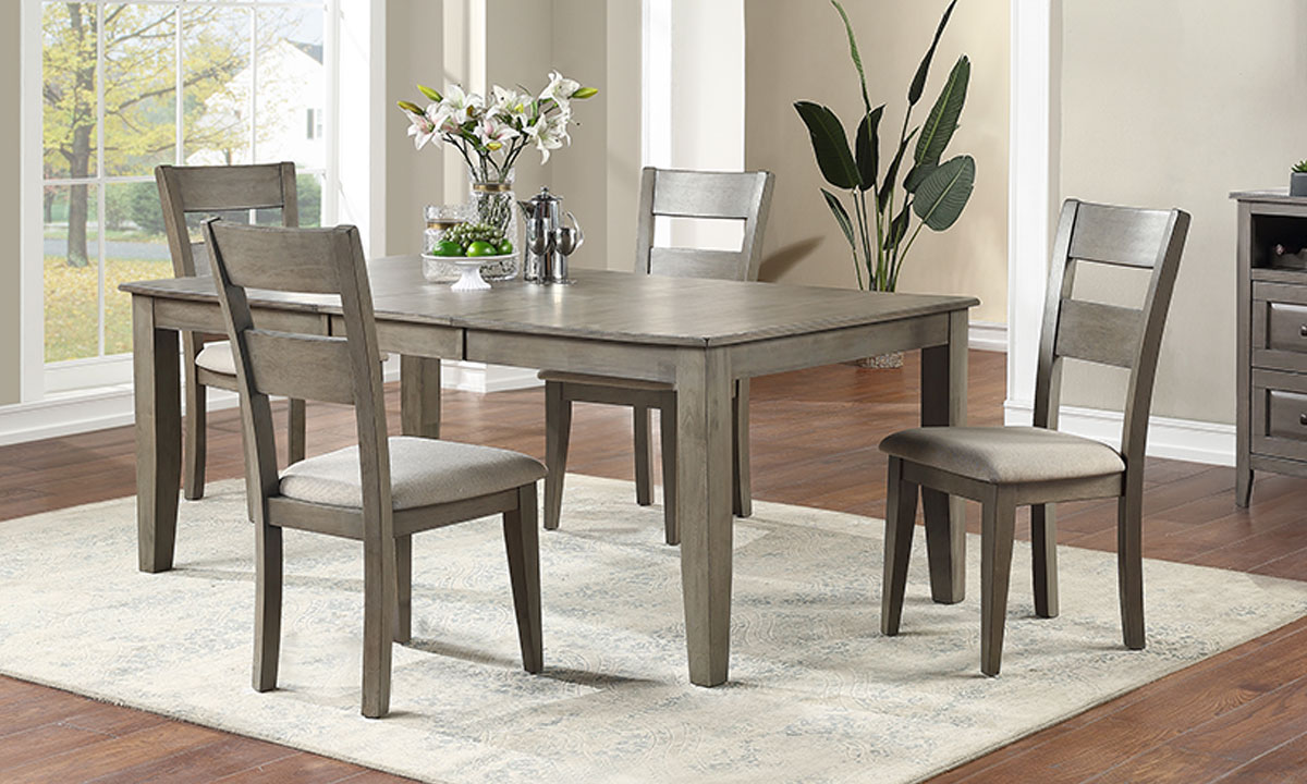 Sophistication and value work to give this 5-piece dining set its inner and outer beauty. Crafted from solid mango wood and an Ohana Gray finish, this dining set includes a self-storing butterfly leaf and offers style to any dining area.