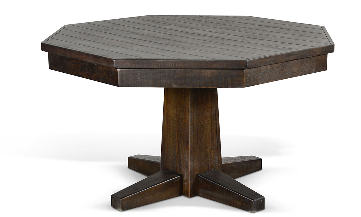 Transform your dining area with the Homestead Tobacco Counter Height Dining Table. Made with a tobacco leaf finish, mahogany solids, and a rough sawn textured top, this table is perfect for adding charm to any room.