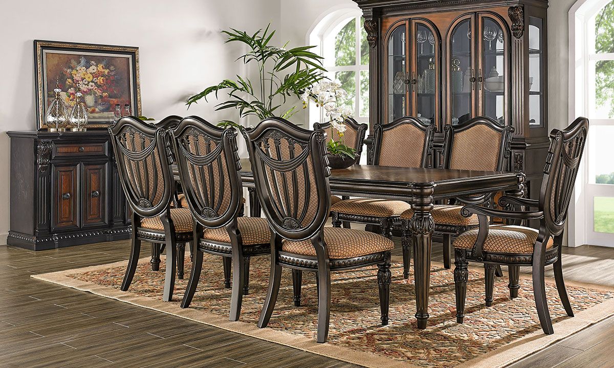 Complete your dining room ensemble with the traditional styling and modern amenities of the Carnegie Manor Sideboard Storage Cabinet. Carefully crafted from Poplar solids and Prima Vera veneers with Walnut inlays, this substantial 60-inch wide sideboard is sealed in a warm, Dark Cinnamon wood finish. Capturing a stunning array of old world-inspired details, this piece is bedecked in ornately carved corbels, intricate carved panel drawer-fronts, egg-and-dart moldings and more complimenting the timeless, traditional silhouette. Modern amenities, like the felt-lined top drawers, built-in silverware tray and spacious lower cabinets, make this the perfect companion piece for all your dinner parties and events.
