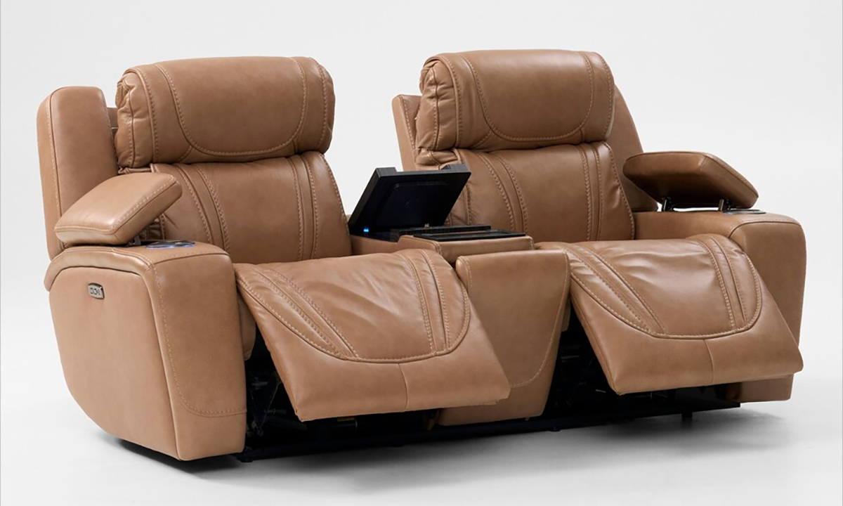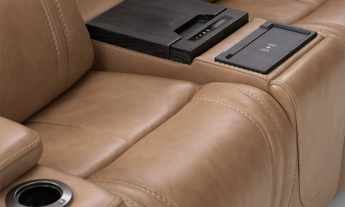 Jet Set Taupe Leather Power Loveseat