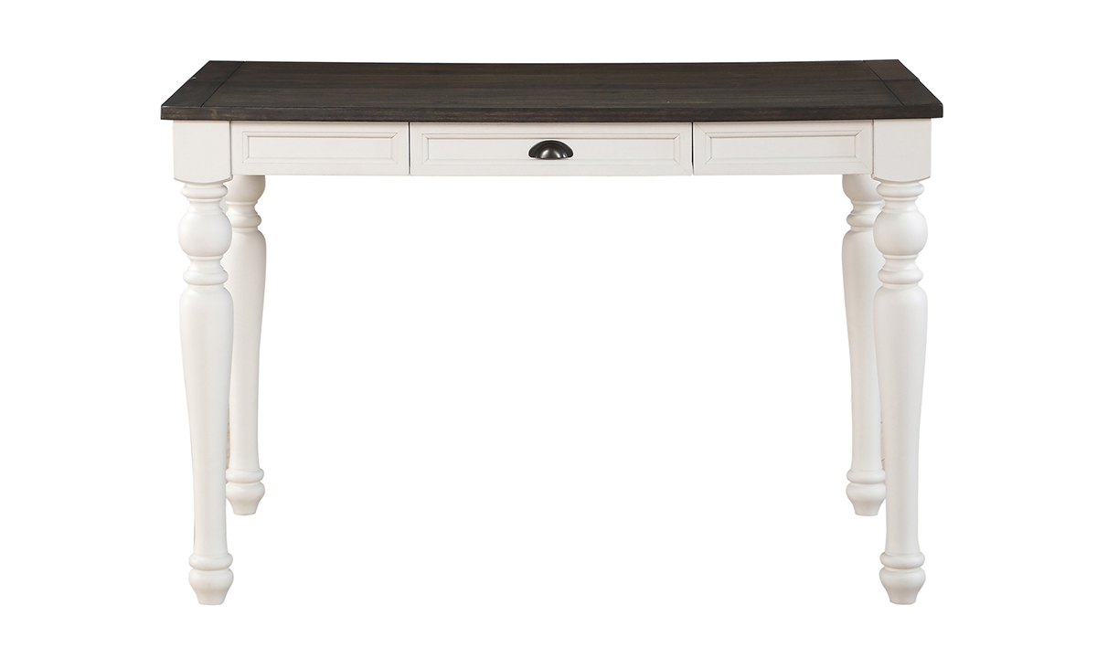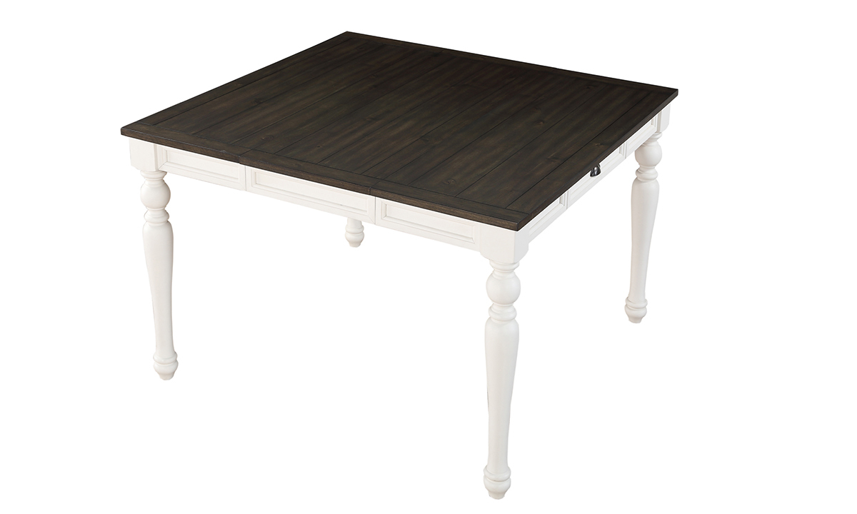 Years of happy hosting and memorable meals are on the table with this full dining suite made from hardwood solids and Acacia wood veneers. Adding to its inner and outer lasting beauty are turned legs and picture-frame apron details, and an extension leaf that increases the dining surface from 64 to 80 inches wide. A two-tone ivory and mocha finish add a contemporary twist to the collection’s old-world character and charm.