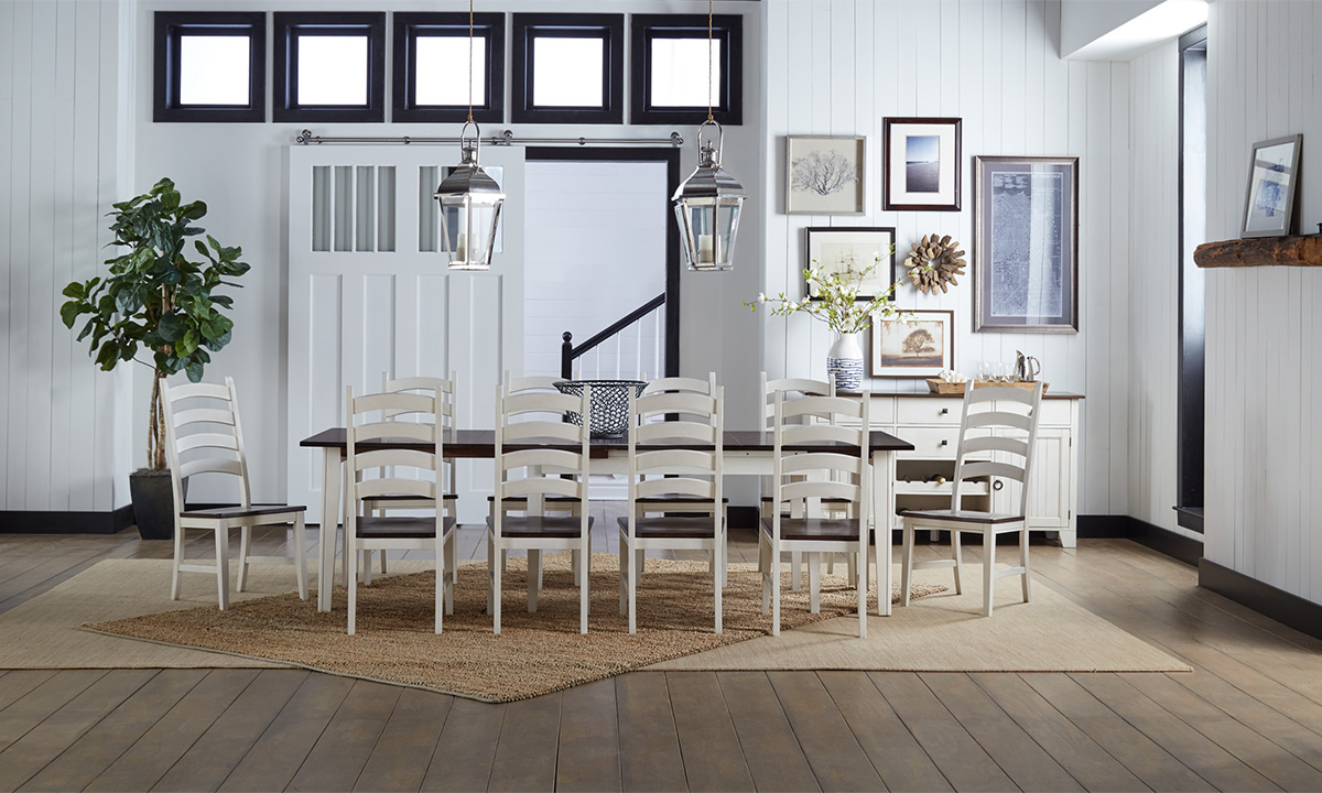 Enhance your dining room and bring style with our Ladderback Side Dining Chairs. These two-tone, lightly distressed chairs feature a stylish arch ladderback design and contoured seats for ultimate comfort.