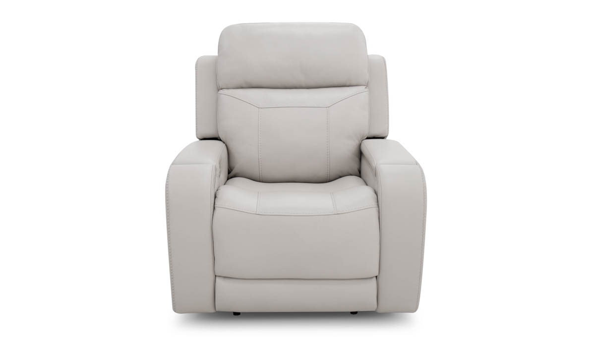 Discover the Maverick Dove Leather Sofa, featuring top grain leather with match, power headrest, footrest, and lumbar. Enjoy multimedia control with immersive sound, hidden cupholders, and a drop-down table.