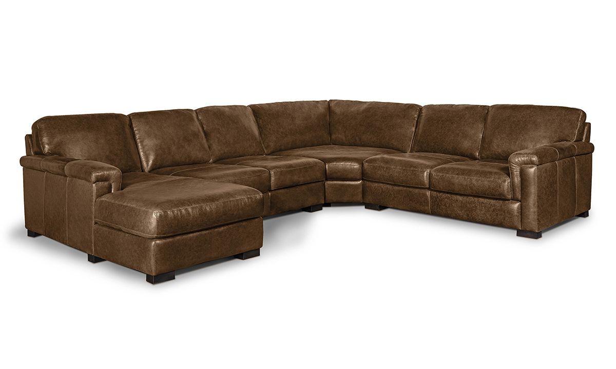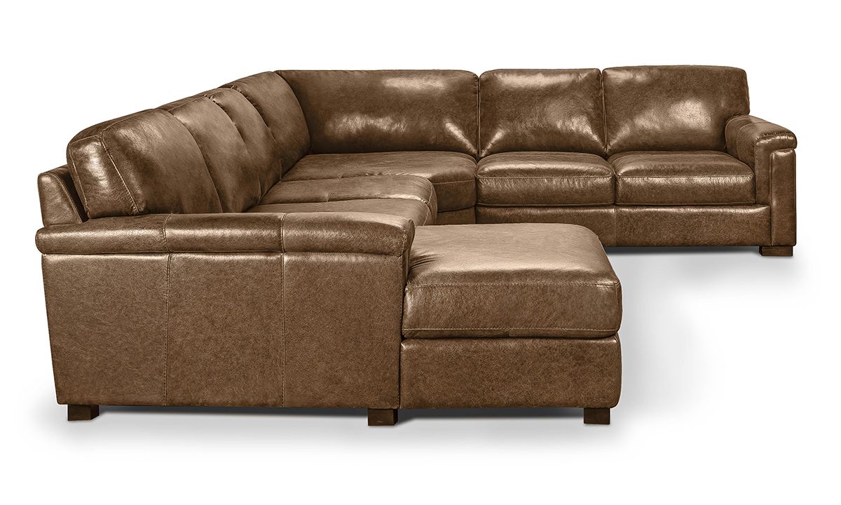 Choose from twelve of our most popular premade options or visit us in store to create your own completely customized configuration. The Medici Leather Collection is available in Chestnut Brown and Grey Sectionals and Living Room Sets, including a Sofa, Loveseat, Chair and Ottoman.