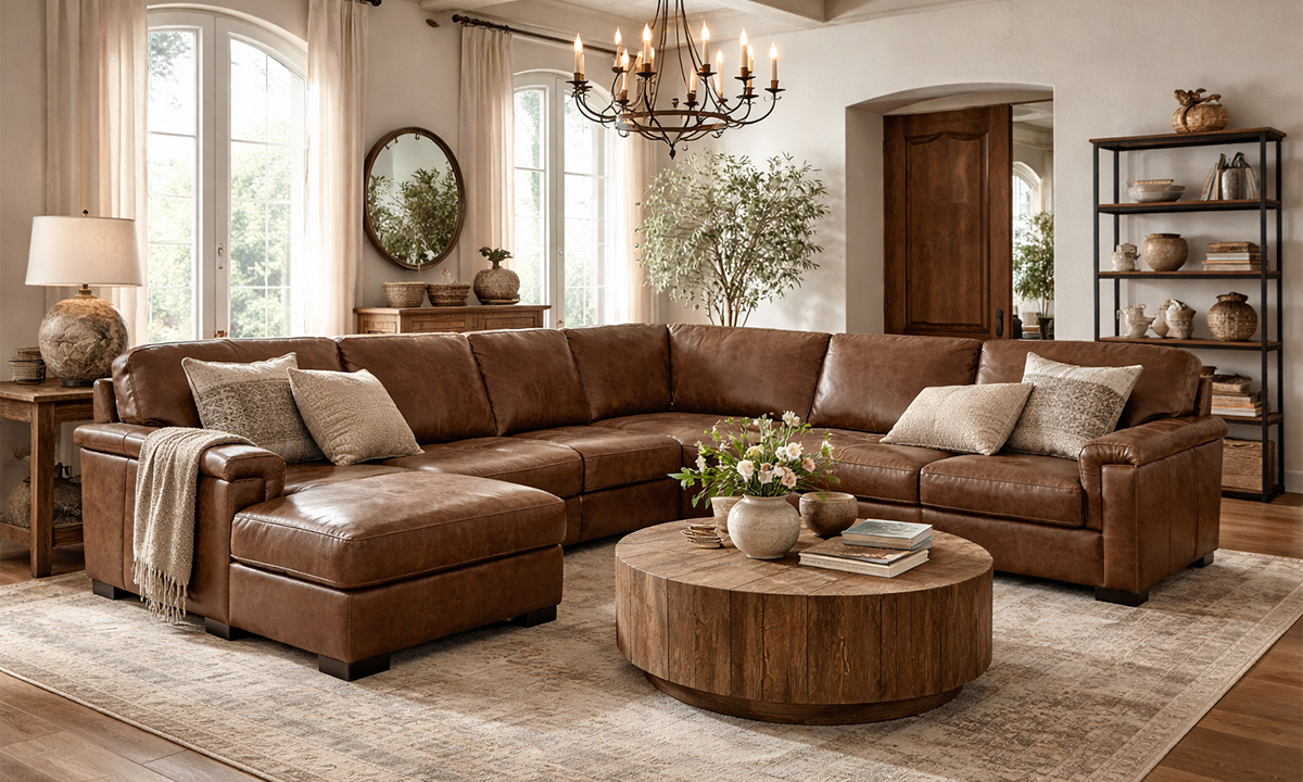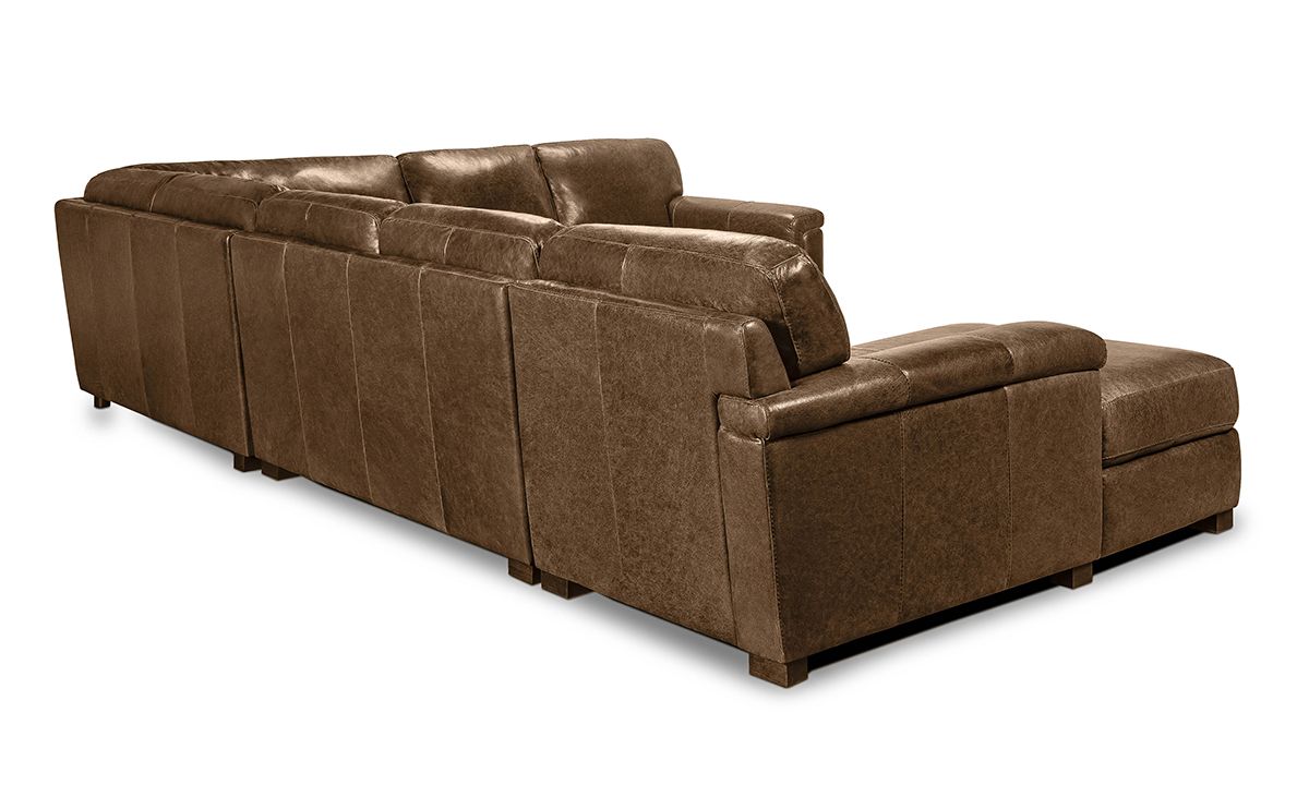 Completely hand-tailored in top grain Italian leather and distinguished by a low-slung profile and contemporary layover armrests, the Medici Chestnut Leather Collection is designed to make a lasting impression. Carefully handcrafted in Italy for lasting looks and comfort, these premium sectionals start with solid hardwood frames and Pirelli webbed support systems, which are then completely wrapped in allover foam padding and high-density foam cushions. The rich chestnut brown color lends a timeless feel to the contemporary look while capturing the soft, luxurious feel of premium top grain leather that will only get better with time.
