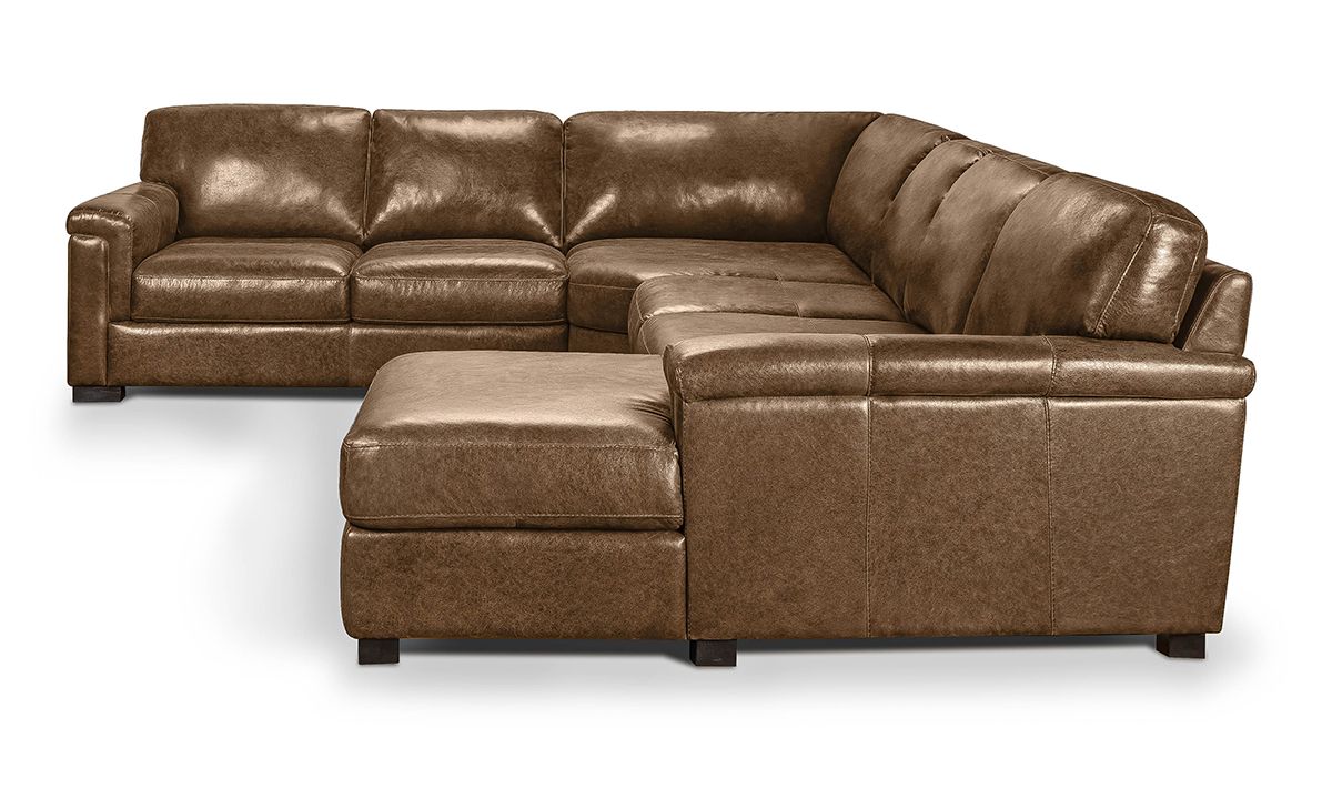 Completely hand-tailored in top grain Italian leather and distinguished by a low-slung profile and contemporary layover armrests, the Medici Chestnut Leather Collection is designed to make a lasting impression. Carefully handcrafted in Italy for lasting looks and comfort, these premium sectionals start with solid hardwood frames and Pirelli webbed support systems, which are then completely wrapped in allover foam padding and high-density foam cushions. The rich chestnut brown color lends a timeless feel to the contemporary look while capturing the soft, luxurious feel of premium top grain leather that will only get better with time.