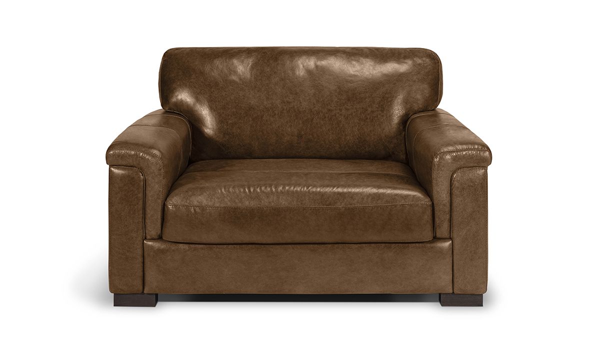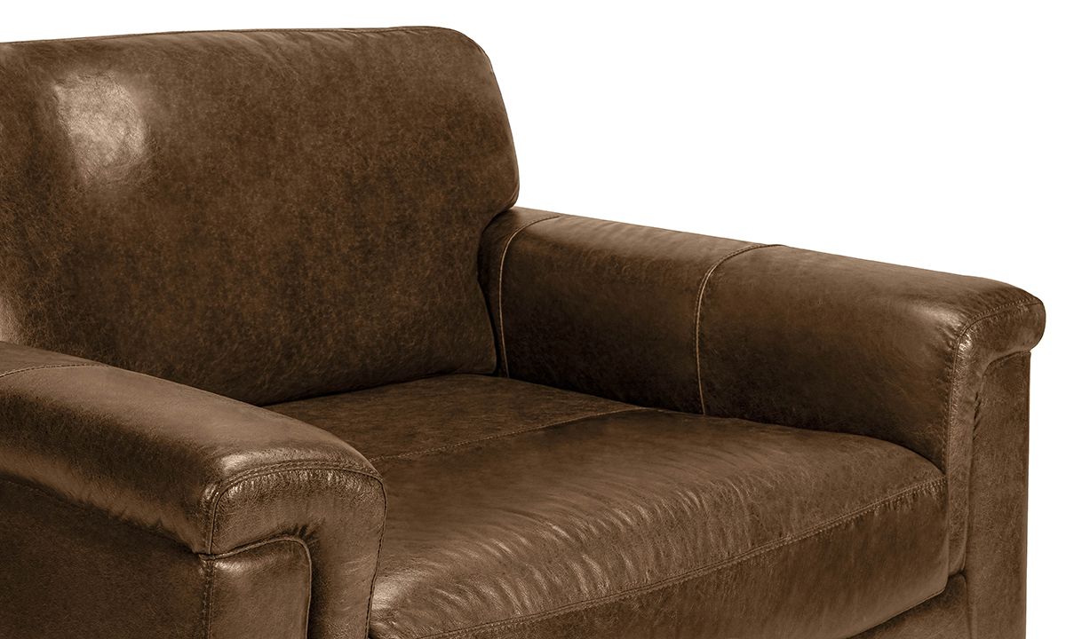Introduce a luxe spot made for long-term lounging to your living room, home library or reading nook with the timeless style of the Medici Chestnut Leather Armchair. Carefully handcrafted in Italy for utmost durability, this laidback 56-inch wide armchair starts with a solid hardwood frame and Pirelli webbed support system, which are then completely enveloped in all over foam padding and topped with plush, high-density foam cushions. Buttery soft top grain Italian leather is hand-tailored to the contemporary, low-slung profile, distinguished by unique layover armrests, distinctive stitching accents and an irresistibly deep seat. Warm chestnut brown colored leather softens the modern design while capturing the luxurious look and feel of premium top grain leather, gracefully enhancing over time with everyday wear and age.
