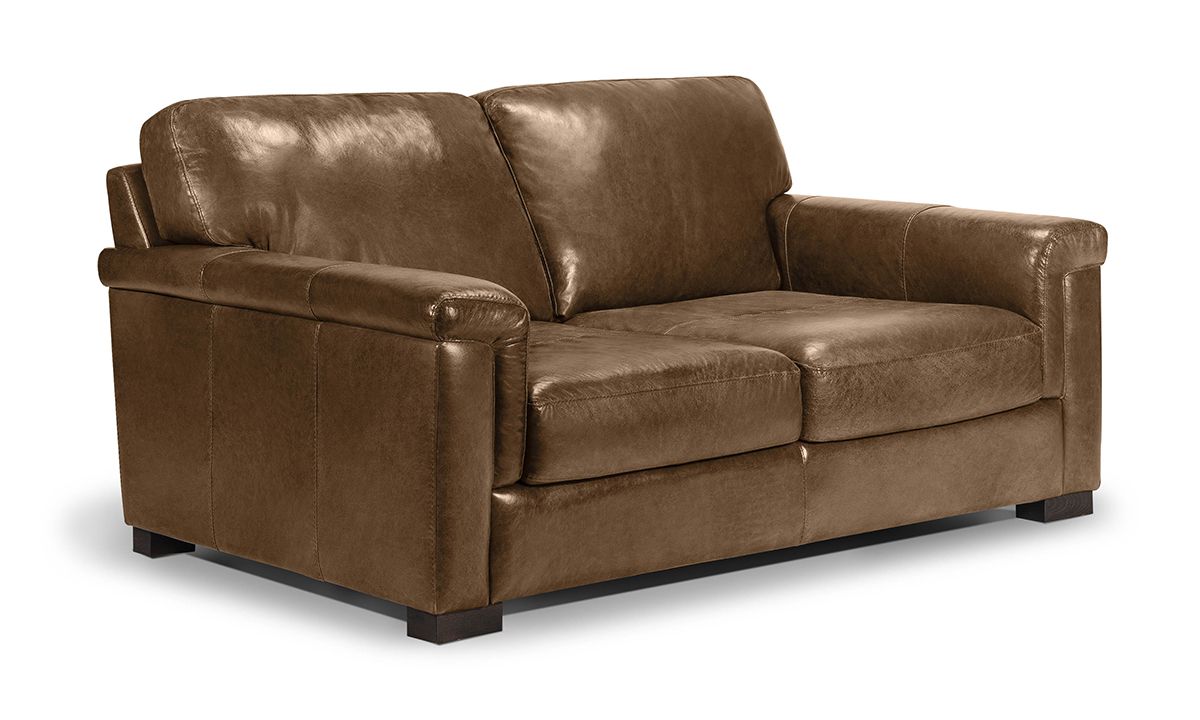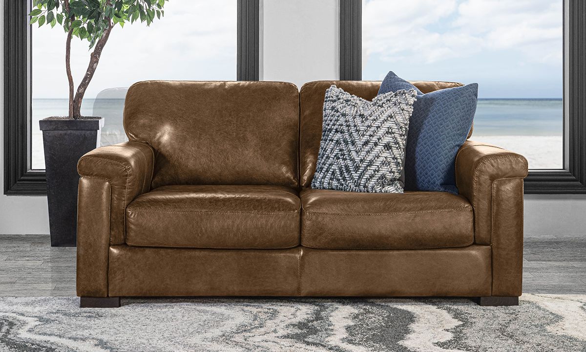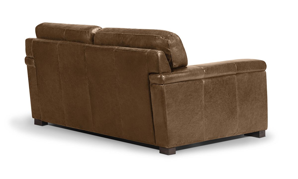 Complete your living room, entertainment space or home office with the premium quality and handsome charm of the Medici Chestnut Leather Loveseat. Carefully handcrafted in Italy for utmost durability, this cozy 71-inch wide loveseat starts with a solid hardwood frame and Pirelli webbed support system, which are then completely enveloped in all over foam padding and topped with plush, high-density foam cushions. Buttery soft top grain Italian leather is hand-tailored to the contemporary, low-slung profile, distinguished by unique layover armrests, distinctive stitching accents and irresistibly deep seats. Warm chestnut brown colored leather softens the modern design while capturing the luxurious look and feel of premium top grain leather, gracefully enhancing over time with everyday wear and age.