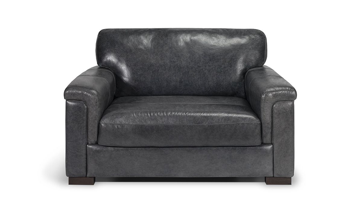 Complete your living room, entertainment space or home office with the premium quality and handsome charm of the Medici Grey Leather Loveseat. Carefully handcrafted in Italy for utmost durability, this cozy 71-inch wide loveseat starts with a solid hardwood frame and Pirelli webbed support system, which are then completely enveloped in all over foam padding and topped with plush, high-density foam cushions. Buttery soft top grain Italian leather is hand-tailored to the contemporary, low-slung profile, distinguished by unique layover armrests, distinctive stitching accents and irresistibly deep seats. Softening the modern design, the calming dark grey leather color captures the luxe look and feel of premium top grain leather to give the piece a lasting beauty that will only get better with everyday wear and age.