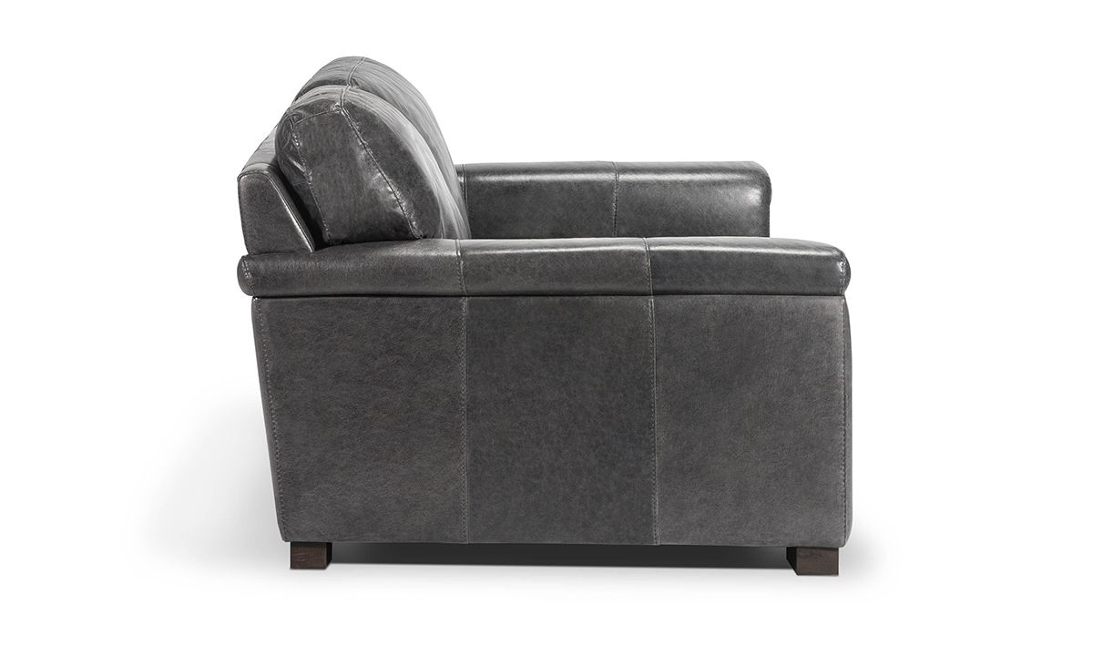 The Medici Leather Collection is available in Chestnut brown and Grey colorways. Choose from the sofa, loveseat, armchair and ottoman of the living room sets, browse our twelve most popular sectional configurations or create your own for a completely custom look.
