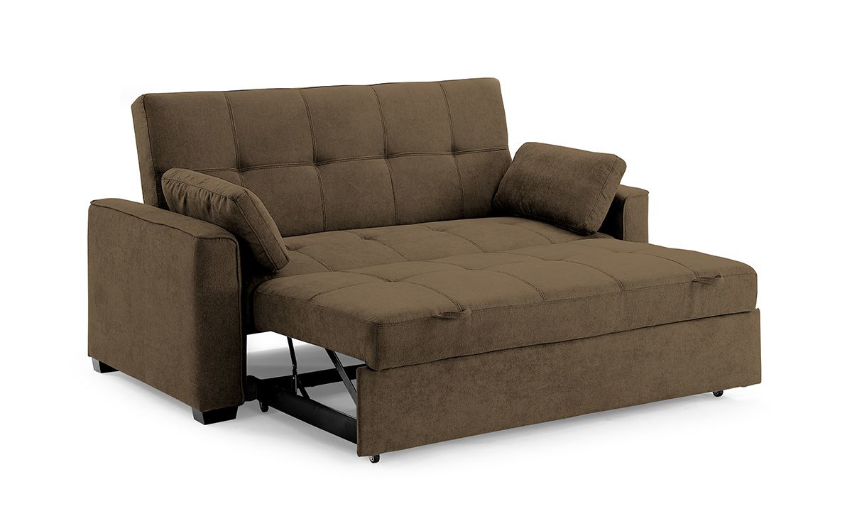 Form, function and fun await when you add the Nantucket sleeper sofa to your living space. Encompassed within the contemporary silhouette of the sofa is the pocket-coil innerspring support system wrapped in high-density foam cushions and soft, easy-clean charcoal micro-suede upholstery. Clean, angular lines and stylish tufting define the look of this polished piece and conceal the hidden sleeper functionality, which can be easily accessed by the two pull handles at front and slide forward to reveal a cushioned platform that pops up and sits flush with the existing sofa seat. The sofa back also reclines backward into a lounging position for optimal TV viewing or comfortable reading and lays flat to create a queen-size bed with the pop-up platform. Perfect for sprawling out during movie nights or as an extra comfortable sleeping space for guests, this sofa is a clever, appealing addition to any space.
