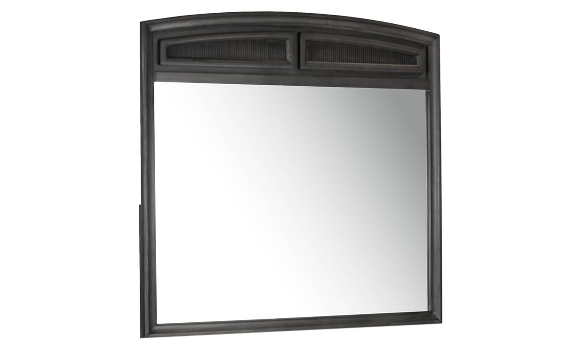 Hung on a wall as a versatile accent piece or affixed to the coordinating Parkhurst Grey Reeded 8-Drawer Dresser, the Parkhurst Reeded Landscape Mirror elevates the décor of any living space. Perfect in the bedroom, hall or as living room décor, this versatile 42-inch wide beveled glass mirror is finished with a Birch veneer frame in a rustic Platinum Grey finish. The gently arched top with decorative reeded accents lends unexpected detailing to the classic piece.
