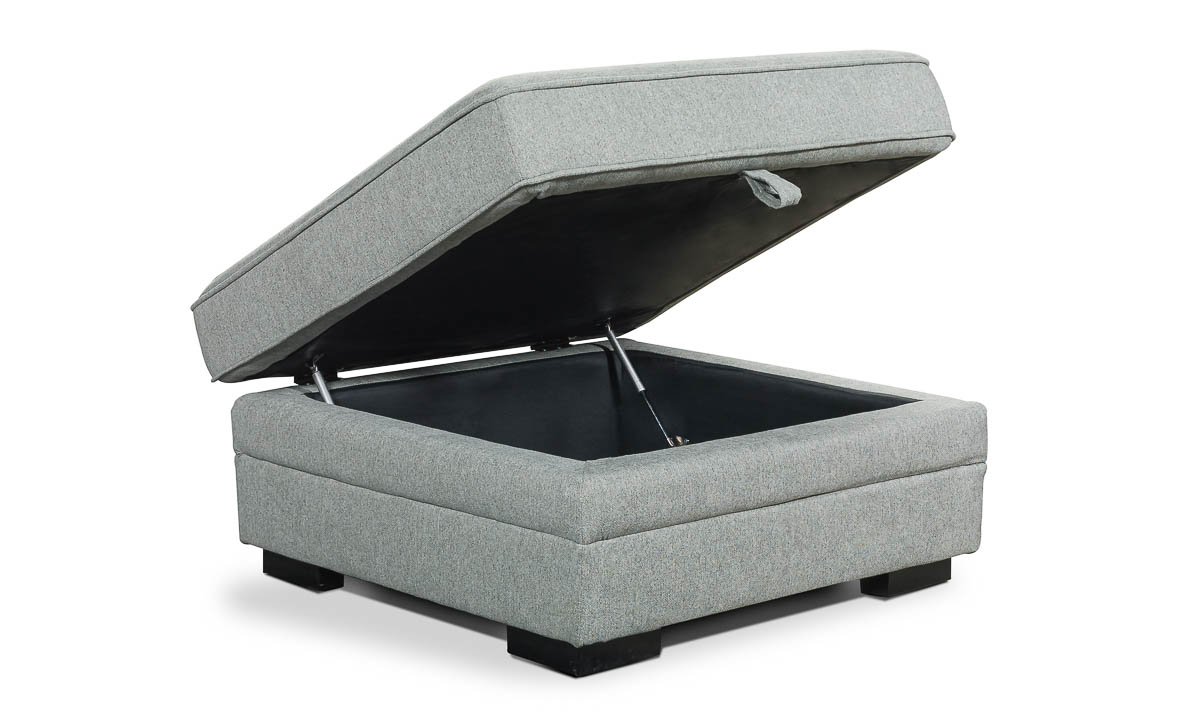 Accentuate your living space and keep the room tidy with the Prospect Pebble Storage Ottoman. This 35-inch square accessory will make an easy addition to the décor thanks to its soft pebble Gray fabric. Simply lift the top of this ottoman to reveal the hidden storage space inside, perfect for stowing blankets and more.
