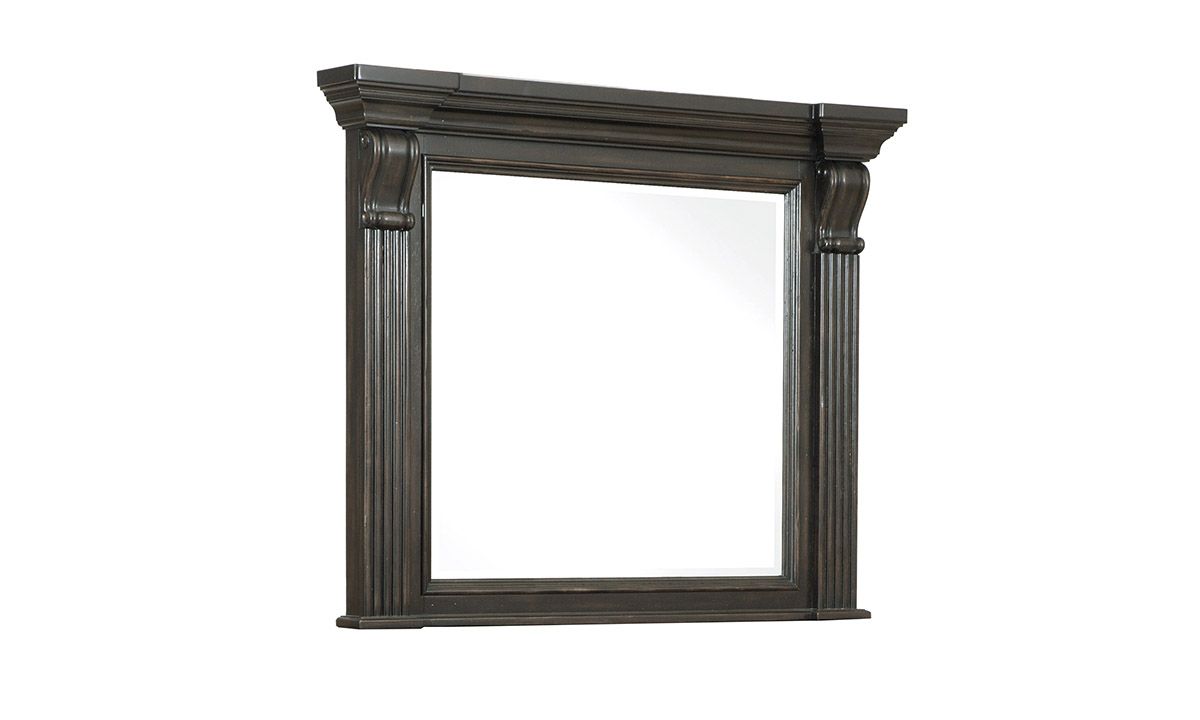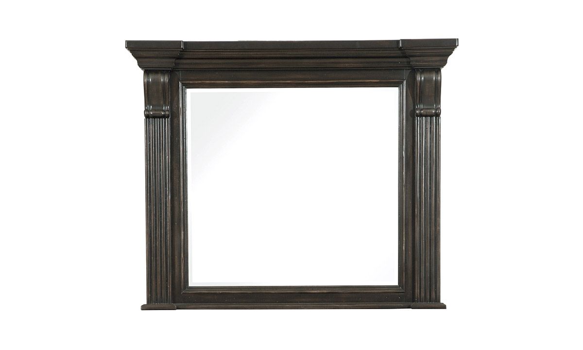 Hung on a wall as a stately accent piece or attached to the coordinating dresser, the Pulaski Blackwell Traditional Mirror adds a timeless finishing touch to any living space. Perfect for an entry way, living room or master suite, this 52-inch wide mirror features a beveled glass inset framed by a sophisticated border of Hardwood solids and Acacia veneers. A rich Smoked Molasses finish enhances the crown molding, reeded pilasters and carved corbels to give this accent piece its heirloom-quality appeal that will bring timeless character to your home.