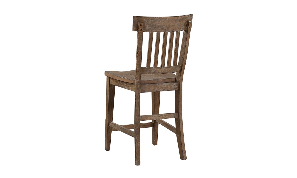 Whether you are adding to the Riverdale Driftwood Dining collection or supplementing an existing ensemble, the Riverdale Driftwood Slat-Back Counter Height Stool lends timeless charm to any living space. Made to last from Pine and Rubberwood solids, the rough-cut craftmanship and saw-rasping distressing details lend a relaxed, rustic feel to the casual, counter height profile. A modernized take on the understated slat-back design, the light Driftwood finish and weathered treatment give this stool a fresh new look that effortlessly compliments farmhouse, modern, coastal or cottage looks.