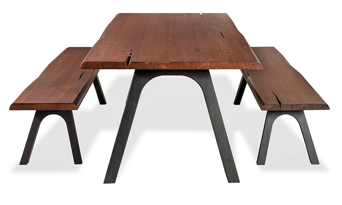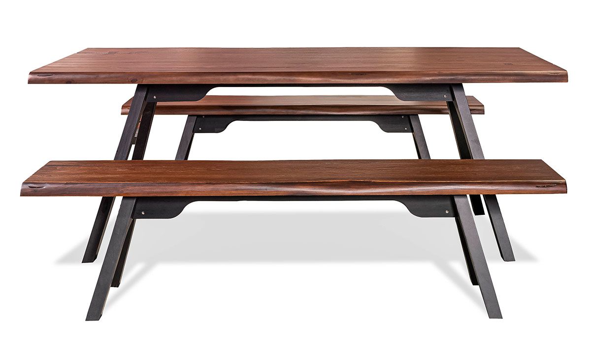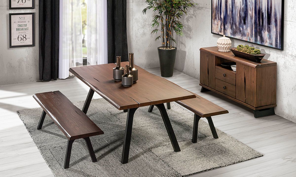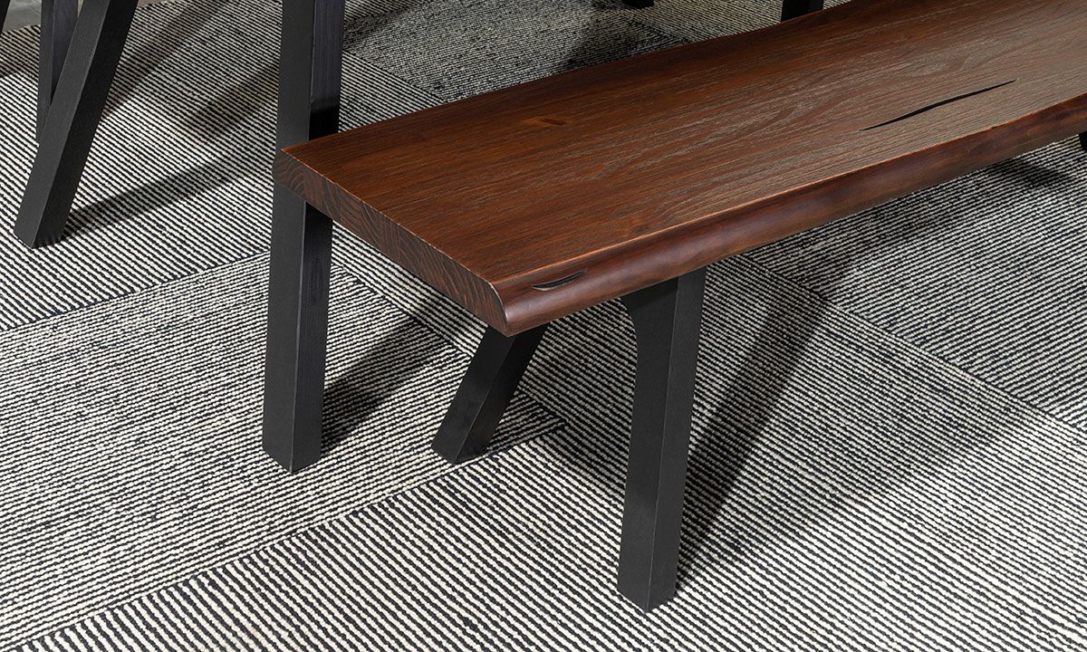 Handmade in Brazil, this dining bench is crafted from solid pine with natural, live wood edges for a classic look. Brushed with rustic brown finish on top and black finish wooden legs, this bench is perfect for pairing with the rest of the Rotta Denver Live Edge Dining Set or to mix-and-match with other dining room pieces.
