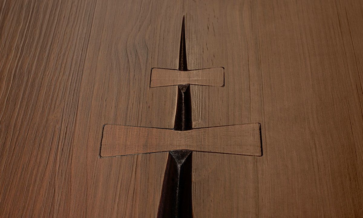 Featuring a brushed rustic brown finish top and black finish wooden legs, this table adds a natural touch to any dining area. Handmade in Brazil with Butterfly joinery, this dining table puts a modern twist on classic beauty.