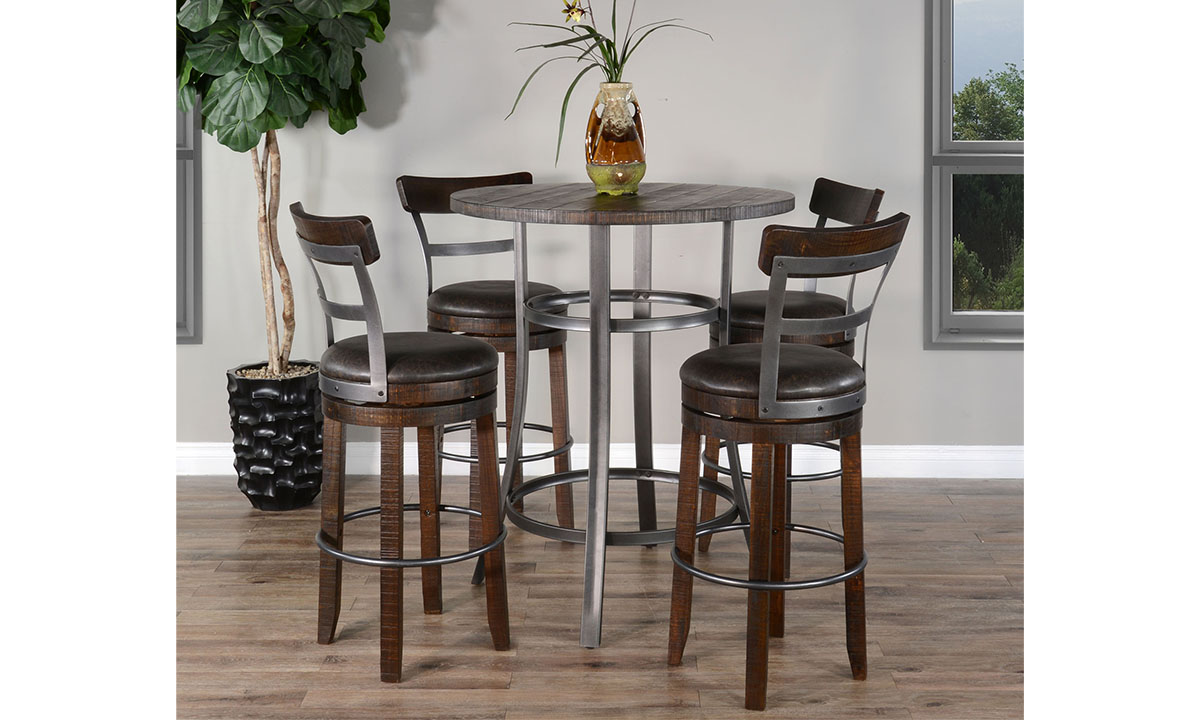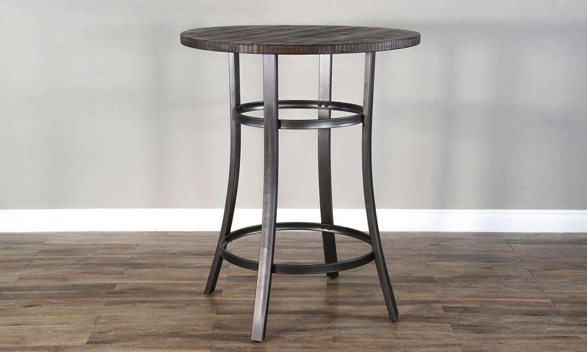 Refresh your home with Barrel & Board's Round Pub Height Table. With its rough sawn textured top and scratch-resistant metal base, this dining table is sure to make a statement in style and luxury that will impress your guests.