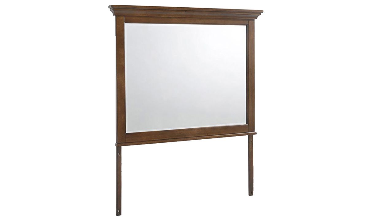 A welcome addition to a living room, entry hall or bedroom, the San Mateo Cherry Arts & Crafts Landscape Mirror can be hung on a wall or attached to the coordinating San Mateo Dresser for endless versatility. Timeless in design and craftsmanship, the beveled glass mirror is bordered by an understated frame crafted from Rubberwood and solid Hardwoods. Classic crown molding and a warm Cherry finish lend an inviting rustic feel and polished look to the accent piece that will elevate the look of any living space.