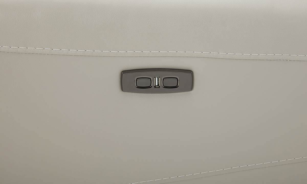 Upgrade your living room or entertainment space with the premium comfort and design of the Thatcher Cream Leather Power Reclining Sectional. Crafted to keep its shape and looks for years, this six-piece sectional is constructed with sturdy hardwood frames and sinuous spring support systems and then wrapped in plush high-density foam cushions. Distinguished by sleek foldover armrests and bustle back seat cushions, the contemporary profile is tailored in sumptuous cream-colored top grain leather. Push button control panels allow you to customize your reclined and headrest positions in three of the five seats while a convenient storage console with power outlets, USB charging ports, storage and cupholders keeps all your relaxation essentials neatly organized.