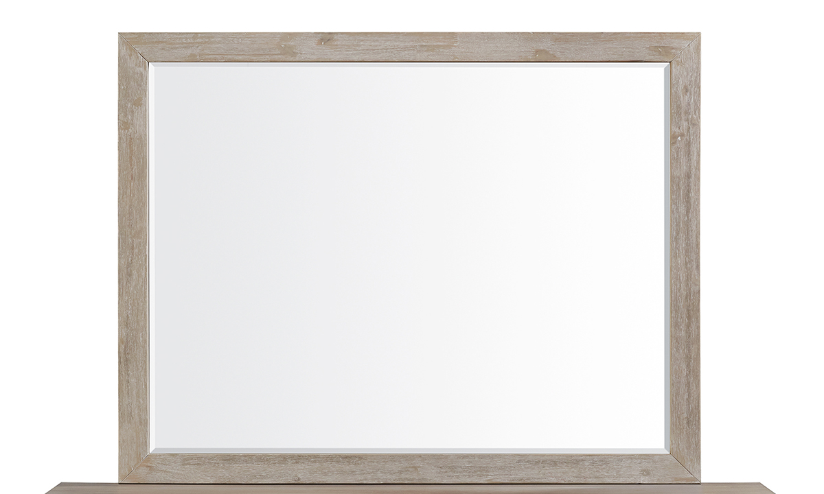 Add elegance to your bedroom with our Vanity Mirror, a perfect mirror for bedroom setups. Its fog gray finish and large landscape surface offer both style and functionality, crafted from high-quality Acacia solids and veneers. Designed to complement its matching dresser, this mirror enhances your daily routine with sophistication. Complete the set with this mirror today!